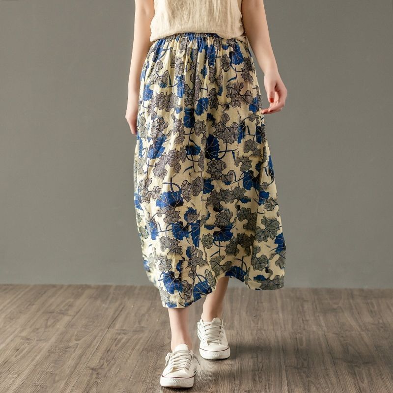 Women's Floral Skirt Casual Loose Slim A-Line Skirt Summer New Fashion Versatile Retro Skirt