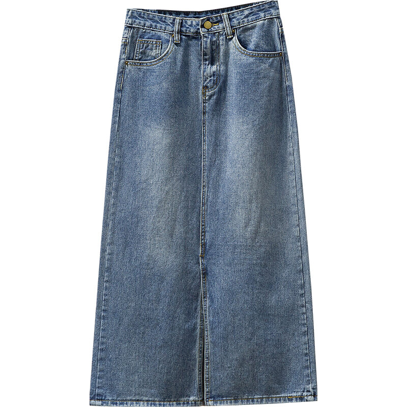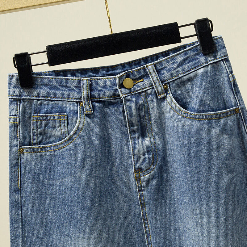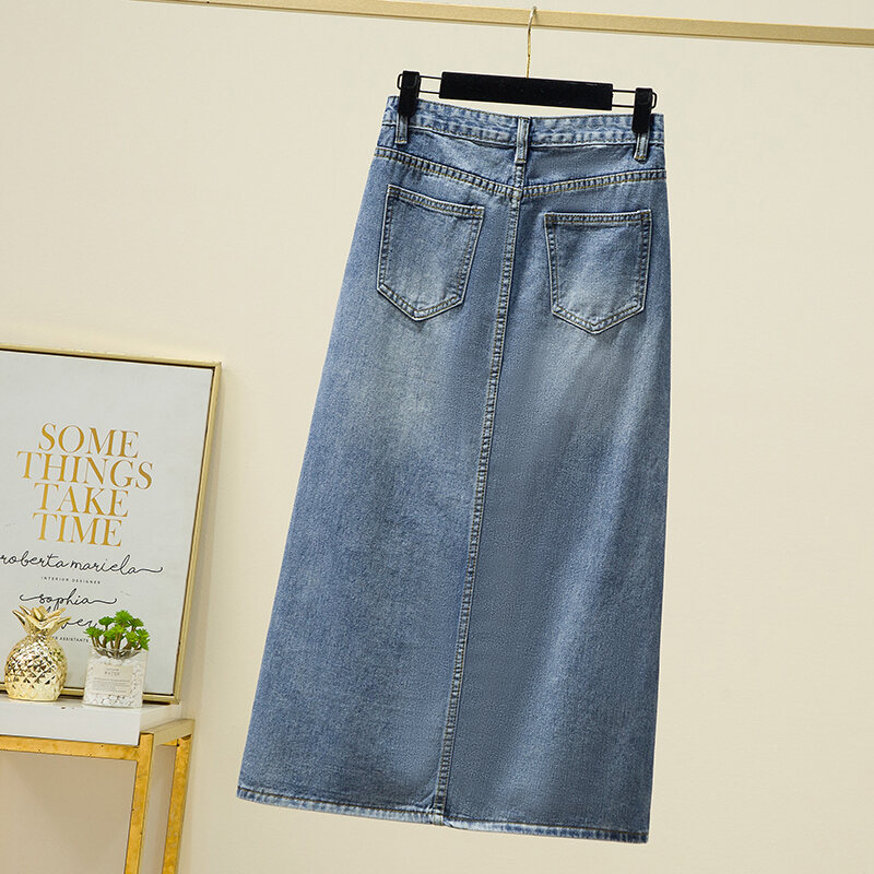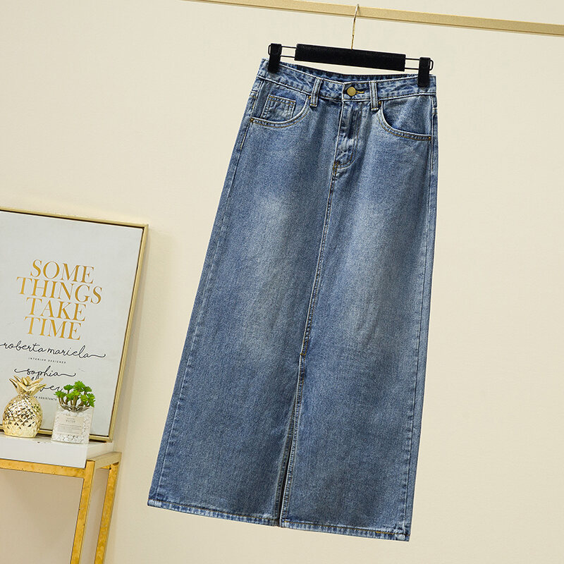 Loose Slim Looking Straight Skirt Women's Mid-Length Autumn and Winter Split Denim Skirt plus Size Fat Sister A- line High Waist Skirt