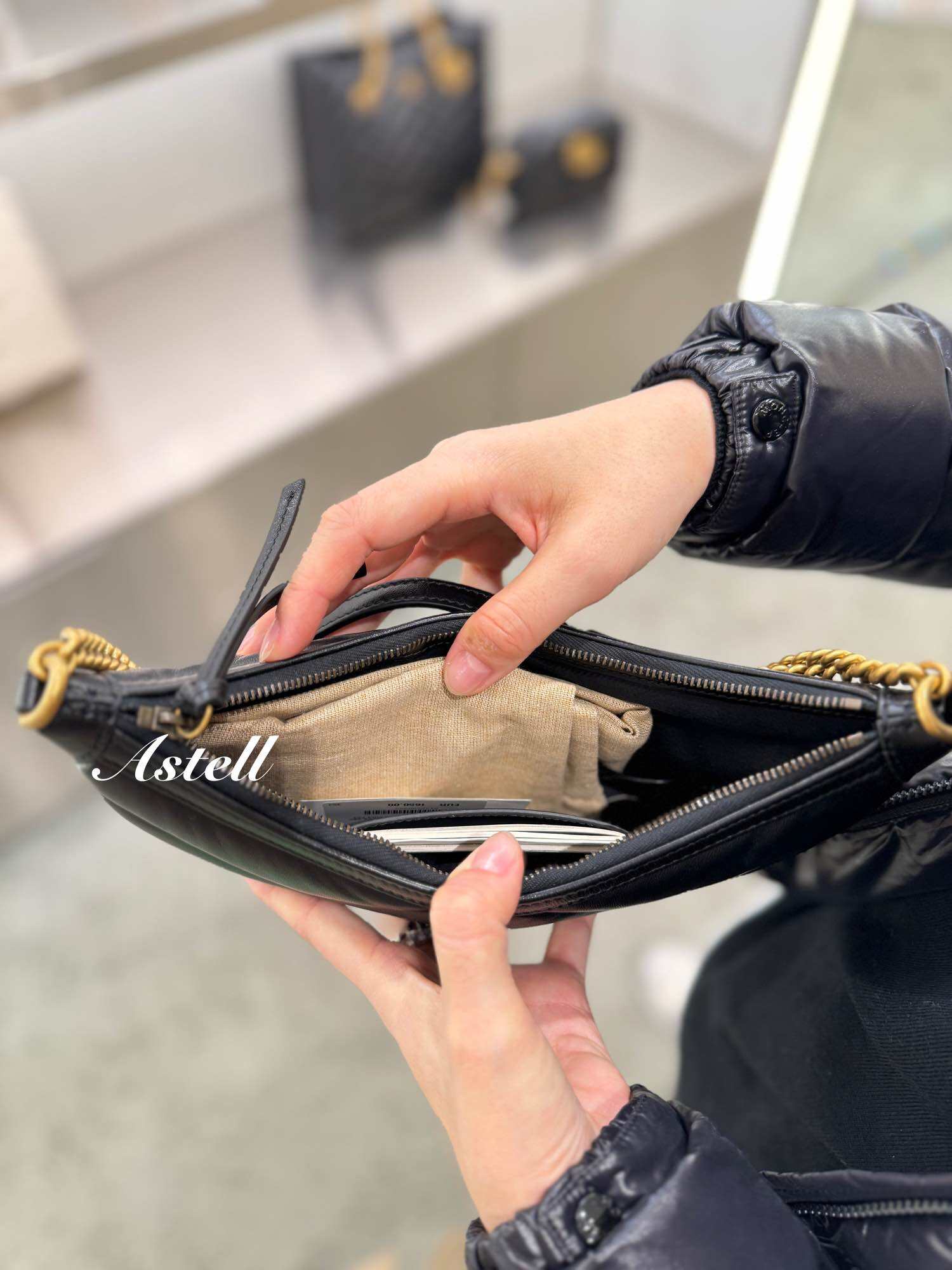 (Pre-loved) Chanel 22 Mini Hobo Handbag in Black Shiny Calfskin and AGHW