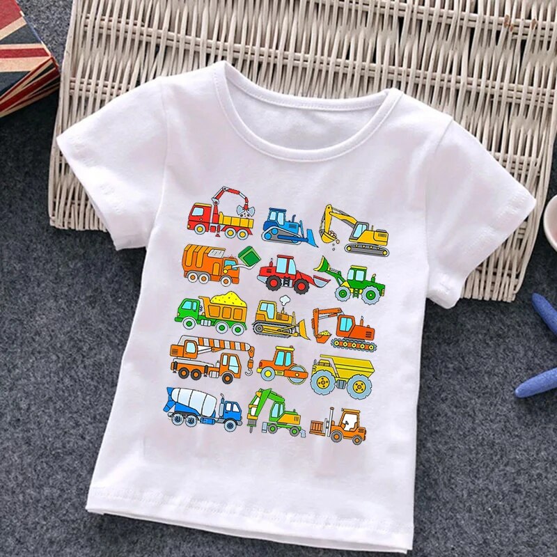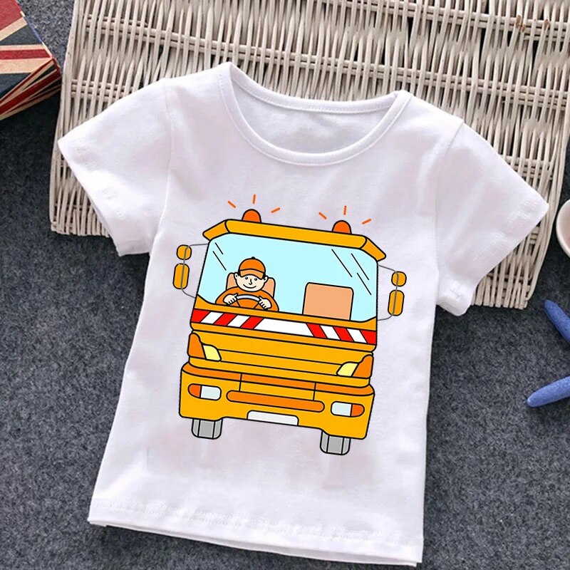 Fire Truck Fireman Print Children's T-shirt New Summer Short Sleeve Kids Tshirt Cartoon Harajuku Tshirt Girl Boy T Shirt Top Tee