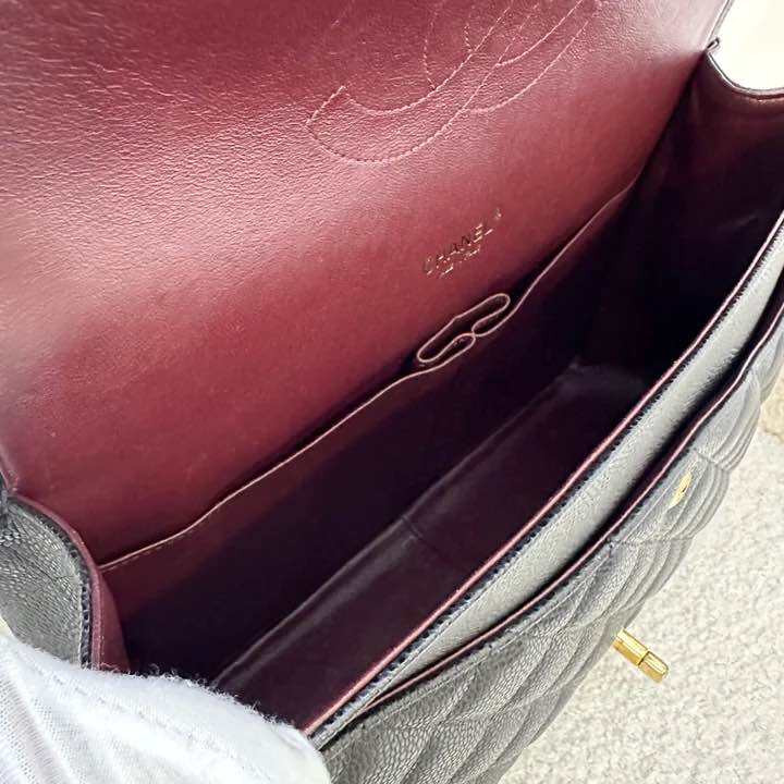 Condition: 8.6/10 very good condition with minor but slightly noticeable signs of use/storage. Noticeable scratches and minor fadedness on the hardware, especially on the turn-knob. Noticeable press marks on the 2nd flap. Bag is in good shape with minor softening. Not for very particular buyers but overall in rather beautiful condition.