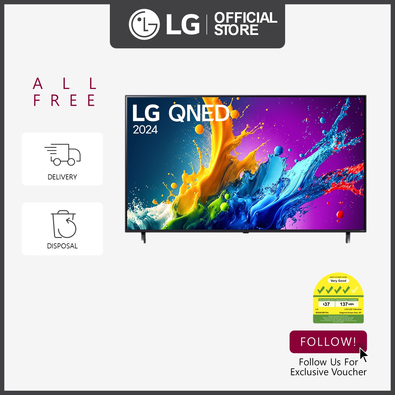 [NEW] LG 50QNED80TSA 50" 4K Smart TV + Free Delivery + Free Disposal