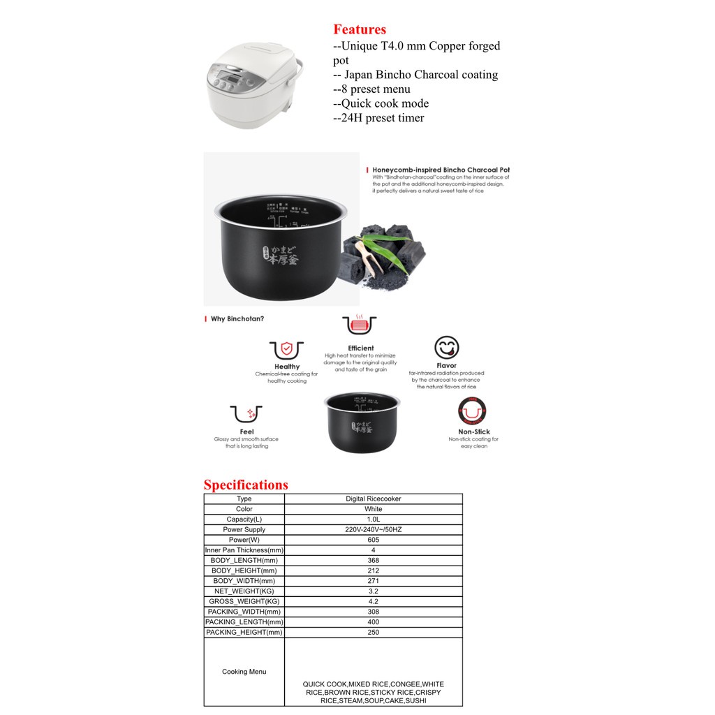 Toshiba 1.0L Digital Rice Cooker (RC-10DR1NS)