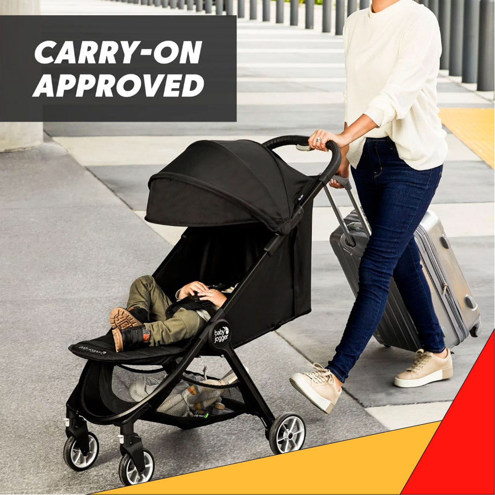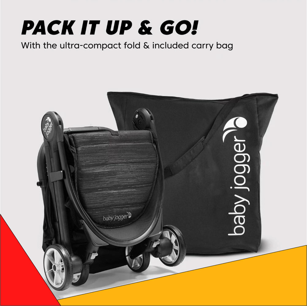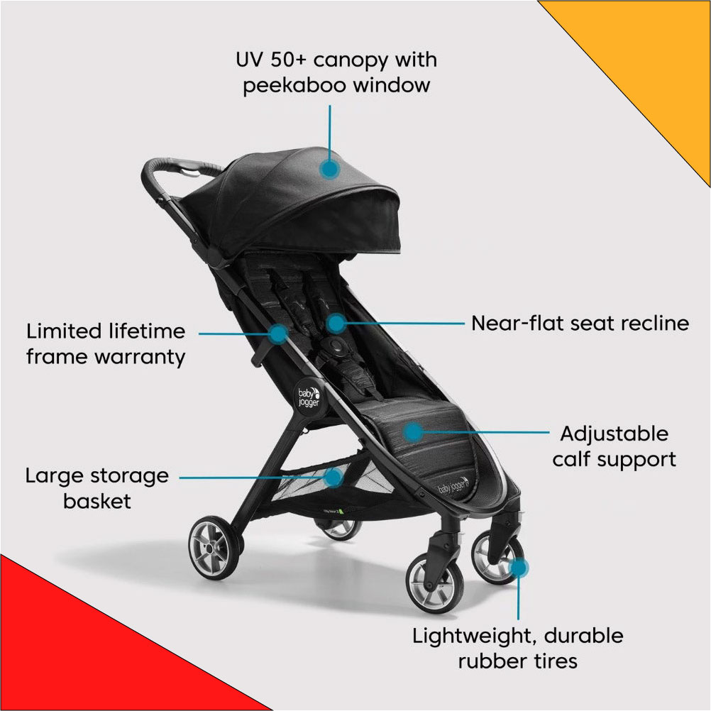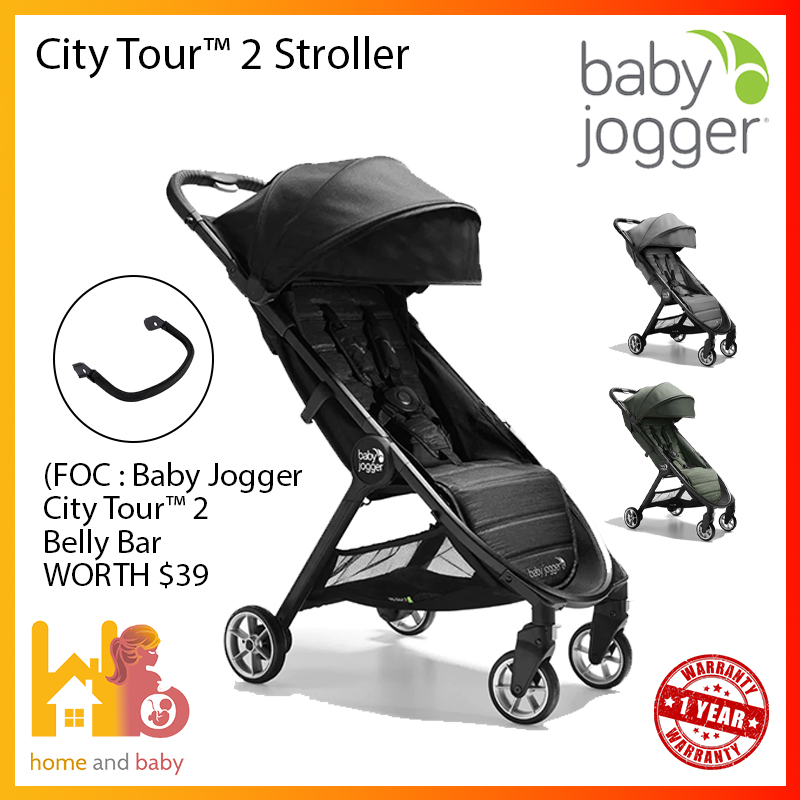 Baby Jogger® City Tour™ 2folds up small for big adventures—85% smaller than when it's unfolded. The City Tour™ 2 is the ultimate stroller for travel, with an ultra-compact, one-step fold, a weight of only 14 lb, and an included carry bag. But despite its lightness, the City Tour™ 2 doesn't skimp on features.