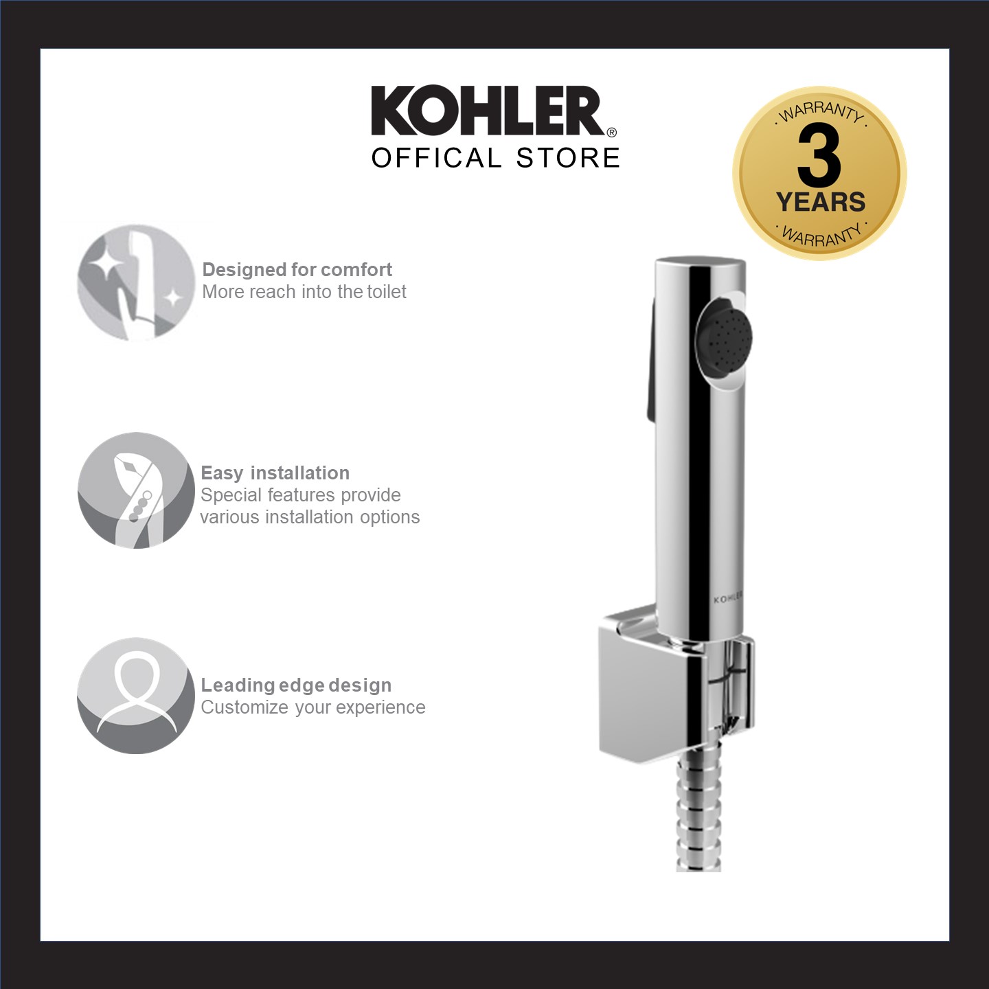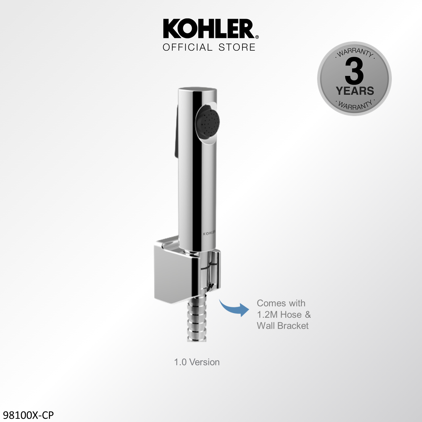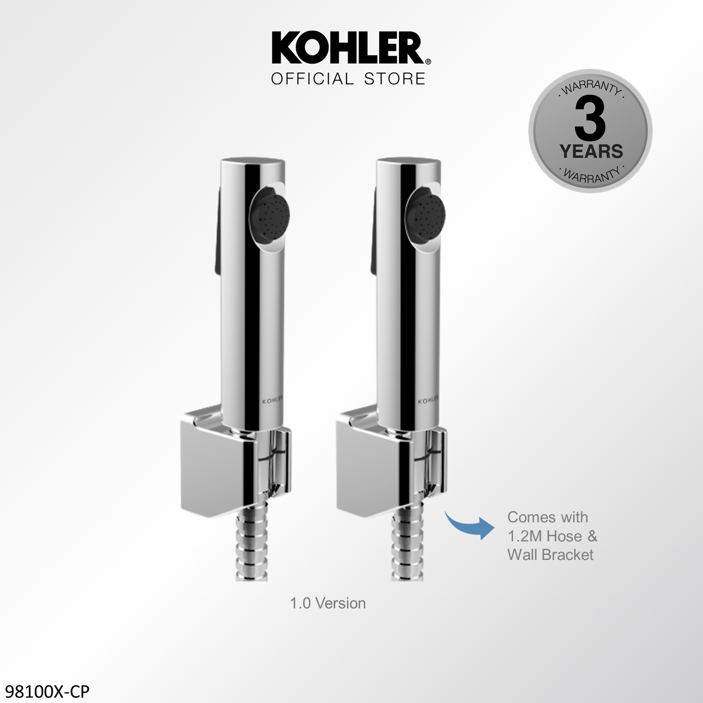 [Upgraded] KOHLER Cuff Hygiene Spray with Wall Bracket & Hose, Anti-bacterial Bidet Spray, Polished Chrome 1.0 K-98100T-B-CP / 2.0 Upgraded K-R29782T-CP
