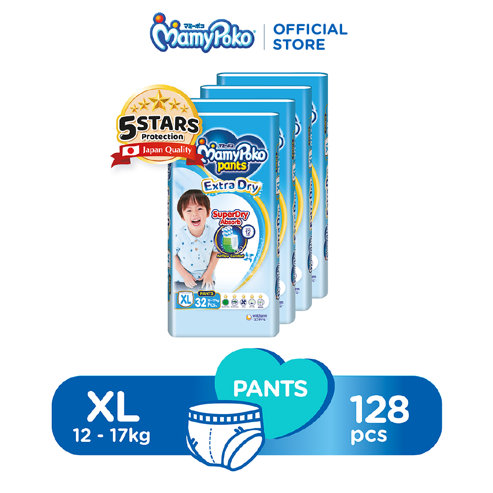 MamyPoko Extra Dry Pants Baby Diapers XL 32pcs x 4 Packs (12-17kg) [Carton]