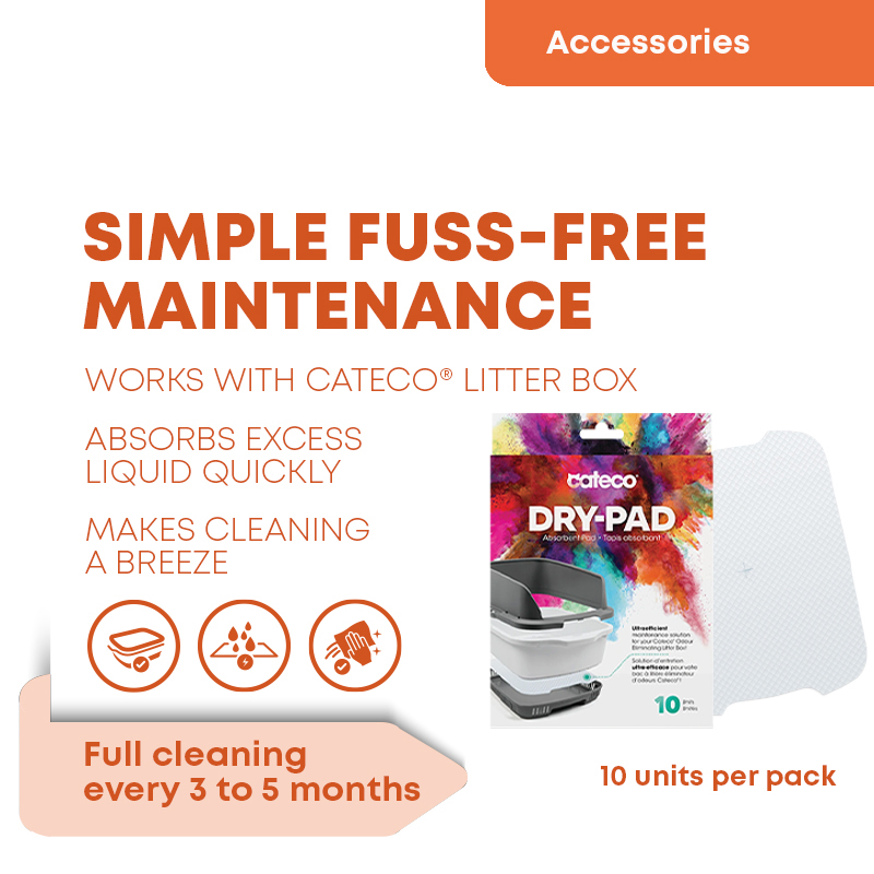Designed to make the cleaning and maintenance of your Cateco Litter Box as simple as possible! Place the dry pad in the lower section of your Cateco Litter Box to absorb excess liquids quickly and keep the litter box dry at all times. The Dry Pads prevent liquids from sticking to the bottom of the litter box thus keeping smelly odours contained.
