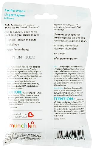 Munchkin® Arm & Hammer Pacifier Wipes - Safely Cleans Baby and Toddler Essentials, 1 Pack, 36 Wipes
