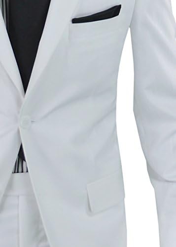 ( How to Choose Suit Size ) - Size selection is for US-Suit-Size only (jacket). Waist size (pants) is 6 inches less than jacket size. If you are not sure, we strongly suggest you inquire about size first. You can tell us your height, weight, chest circumference and waist circumference and we will figure out the best size for you. 2 Button pure white men's modern fit suit, Single breasted dual side vents jacket Plain flat front pants come with a drop of 6 inches, Mens suits listed in US sizes Classic modern business fit suit set, Notch lapel collar coat, Soft shoulder pads Year round use, Fine tropical weight man made fabric T/R, 2 Piece tux suit set Mens suit for any occasion wedding business parties, Dry clean only, Imported #2,080,690 in Clothing, Shoes & Jewelry ( ) #1,475 in