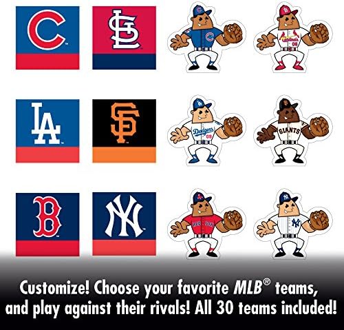 Pitch, field, bat, and run the bases just like a real baseball game! 2 person game, take turns being the pitcher & fielder and the batting team as you play through the full 9 innings! Control the pitcher to throw fastballs and wild curve balls using the innovative magnet technology and control system! Track balls, strikes and outs as you pitch! Personalize the field with your favorite MLB team! Includes all 30 MLB team billboards and over 200 individual player pieces!