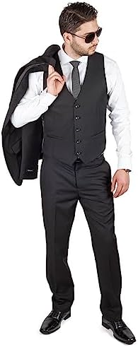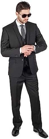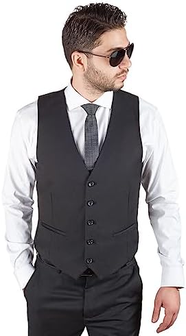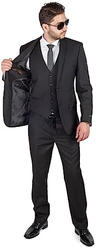 JACKET: Single Breast, 2 Button, Notch Lapel, Double Vents, Fully Lined PANTS: Flat Front Pants, Zippered Fly With Buttoned Waist Tab, 2 Angled Front Pant Pockets, 2 Back Pockets, Unhemmed, Extra Material For Custom Tailoring, Waist Has 2 Inches Room To Let Out. 6 Inch Drop: Waist Inches is Always 6 Less Than Shoulder Size VEST: 5 BUTTON V NECK ADJUSTABLE BACK STRAP INSEAM: Open (Unhemmed For Altering Ease) FREE Solid Black Slim AZAR MAN Tie Included #1,913,602 in Clothing, Shoes & Jewelry ( ) #1,369 in
