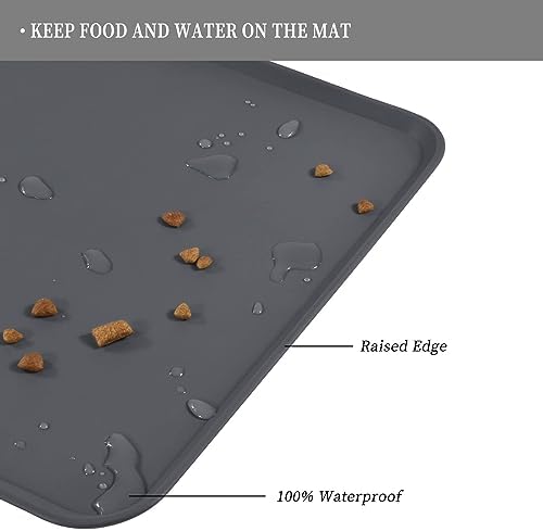 PREMIUM QUALITY SILICONE: Made from food grade silicone without any harmful BPA, our pet feeding mat provides a cleaner and more hygienic dining experience for both you and your furry companion. With a heat resistance of 464°F, it's perfect for your pet's favorite hot meals. VARIOUS SIZES AVAILABLE: Our pet mats come in 5 different sizes - 18.5" x 11.5", 20" x 15", 24" x 16", 28" x 18", and 34.5" x 23". Suitable for all kinds of pets, from puppies to large pets, choose the perfect size for your furry friends and avoid messy spills at mealtime. ANTI-SLIP DESIGN: Our non-slip pet feeding mat ensures stability for your pet's bowl, preventing any water stains or spills on the floor. Enjoy peace of mind when feeding your pet, knowing that their food stays in place. HIGH-RAISED EDGES: Say goodbye to messy floors with our mats' high-raised edges that protect your floors from spills and splashes. Keep food and water contained and your floors mess-free. EASY TO CLEAN: Our pet feeding mats make cleaning a breeze. Simply wipe them down with water or a wet cloth, or toss them in the dishwasher for easy cleaning. Keep your home clean and tidy with our easy-to-use mats. #126 in Pet Supplies ( ) #1 in #2 in