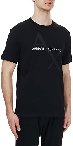 A|X ARMANI EXCHANGE mens Crew Neck Logo Tee T Shirt, Quilted Logo Black, Medium US
