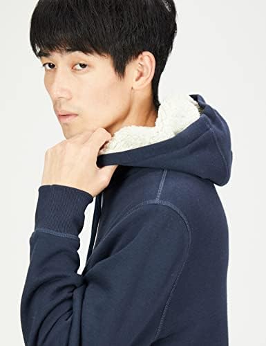REGULAR FIT: Comfortable, easy fit through the shoulders, chest, and waist BRUSHED FLEECE: Midweight 8.3 oz soft brushed-back cotton-polyester blend fleece for staying cozy and keeping warm. Hood and body lined with cozy sherpa fleece. Sleeves lined with jersey. EVERYDAY CASUAL STYLING: This classic pullover hoodie is a go-to cold weather layer with cozy sherpa lining. Match-back to Amazon Essentials Men's fleece joggers or pair with jeans for everyday on-the-go. DETAILS: Features hood with drawstring and metal grommets, front kangaroo pocket, and ribbing at the hem and cuffs. LENGTH: 28" from side neck on US size M. #2,069 in Our Brands ( ) #25 in #430 in #866 in