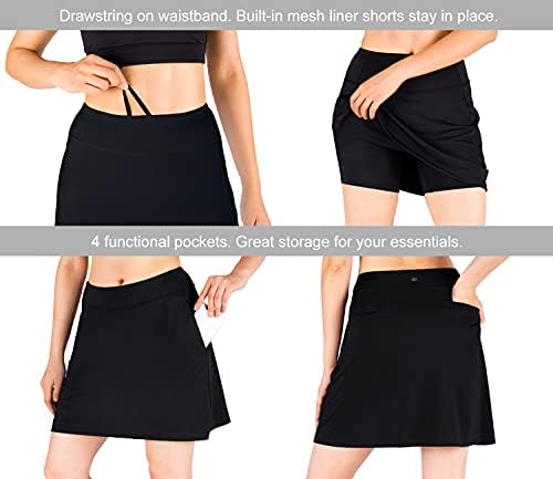 Sun Protection UPF 50+ comes to protecting your skin from the sun's harmful UV rays. Breathable, moisture-wicking, four-way stretch fabric for superior comfort. Skirt length: 17"-18" for more coverage Style-1: 2 Slash pockets and 2 back pockets design on the skirt. Style-2: 2 Side pockets on skirt and 2 convertible pockets on the legs under the skirt. Great storage for golf/tennis balls, golf gloves, smartphone and your other essentials Built-in mesh liner shorts stay in place and don’t ride up NO ROLL waistband for more comfort movement. Elastic waistband with drawstring offers an adjustable fit Ideal for golf, tennis, running, cycling, swimming, lounging around the house and other activities #75,353 in Clothing, Shoes & Jewelry ( ) #128 in #240 in
