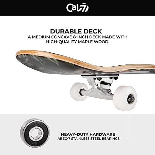 DURABLE DECK — A medium concave 8-inch deck made with high-quality Maple wood. READY-TO-RIDE — Includes 52mm 99A wheels and pre-applied griptape. HEAVY-DUTY HARDWARE — Lightweight aluminum trucks and ABEC-7 stainless steel bearings. SMOOTH SKATING — 95A bushings prevent wheel bite and provide easy carving. 1-YEAR WARRANTY— Covers against manufacturer defects for up to a year.