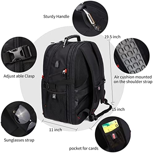 SHRRADOO Extra Large 52L Travel Laptop Backpack with USB Charging Port, College Backpack Airline Approved Business Work Bag Fit 17 Inch Laptops for Men Women,Black