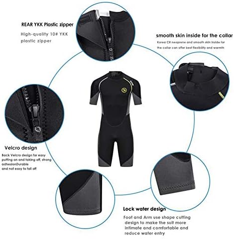 The mens shorty wetsuit should fit snugly and tight to the body, thus to keep the body heat when in the water, you should get a ideal fit after several times uses; It¡¯s made of high quality material neoprene DIVING SUIT DETAIL- Heavy duty YKK Zipper with zipper pull/hook-and loop closure at back is easy on and off, flatlock seams provide you a smooth surf suit. UNIQUE WETSUIT DESIGN- Adjustable fit around the neck.Round neck and cuff with smooth leather design, Reduce friction on the skin,no gaps, reduced water intake. MULTI-SPORT WETSUIT- Designed for all water sports like diving, Spearfishing ,scuba, stand-up paddle boarding, wave surfing,kayaking,swimming,surfing,canioeing, bodyboarding,wakeboarding,windsurfing,FISHING EQUIPMENTS. ZCCO SATISFACTION SALE SERVICE-30 days unconditional refund, 24 hours service.