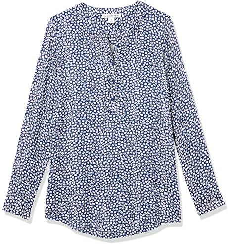 RELAXED FIT: Relaxed, comfortable fit through the body. DRAPEY FLUID TWILL: Made of 100% viscose, our non stretch viscose is extremely breathable and lightweight. With a beautiful drape and a soft, smooth finish, this fabric is comfortable and easy to wear all year round. EASY POPOVER BLOUSE: This versatile blouse is a classic wardrobe essential, perfect for at work, on the go, or weekend exploring. DETAILS: Features a simple band collar, easy button front popover closure, long sleeves, curved shirttail hem with side slits, and back yoke with box pleat for a relaxed roomy feel. ADDITIONAL FABRIC & CARE INFORMATION: Due to the delicate nature of viscose fabric, we recommend you wash it in cold water and hang dry to prevent fabric shrinkage and wrinkles caused by any extra heat. Gently iron or steam for an even crisper, polished look. #526 in Our Brands ( ) #45 in