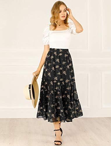 Loose Fit, Calf-Length, Floral Print, Ruffle Ruched, Loose Flare Hem, Elastic High Waist, Pleated Detail, Fully Lined Skirt Versatile floral skirt for daily casual style, or eye-catching piece as a chiffon skirt. Occasion: Suitable for weekend, daily wear, shopping, dating, brunch, holiday, trip, etc The position of the flower pattern will be a little different in each piece, because of the cutting, especially the large flowers, the display is different Styled with Crop Top or Basic Tee and heels to finish the look. Machine Wash Cold with Like Colors, Low Iron, Do Not Bleach or Drying Designed skirt length: Ankle Length. Hemline falls Below Ankle for 5’1’’/At Ankle for 5’4’’/Above Ankle for 5’8’’. Model is wearing in size XS (Height: 5'8", Weight: 115.5 lbs, Waist: 24 inches, Hip: 35 inches). Please Check the Garment Measurement Size Chart below before ordering #38,360 in Clothing, Shoes & Jewelry ( ) #176 in