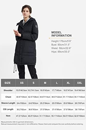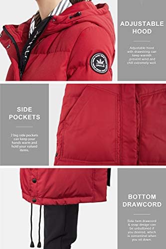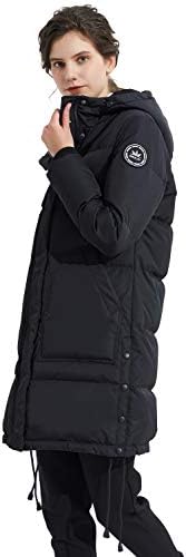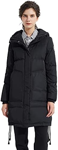 Shell/Lining Fabric: 100% polyester; Body/Sleeve Filler: 90% duck down, 10% feathers. Warm stand collar and big hood provide added protection, and printed inside snap helps seal in warm. Mid-length design will make down jacket more comfortable to wear. The winter jacket is designed to be loose for easy moving in wintry days, and also a good warm-keeping down jacket. Two-way front zipper closure and knit ribbed cuffs, adjustable string on the bottom from the coat for adjusting warmth and comfort easily. This women winter coat always play an essential in cold weather, collecting leggings, scarf and high heels, which make you look charming and beautiful but keep out the cold in winter. The warm down coat will be folded and compacted inside of the package when delivery, so you may feel it thin and flat, if so, lightly pat the jacket with your hands and then have it hang. Our model height is 5'9",chest 31.5", waist 22.8", hip 35", and wearing a extra-small.