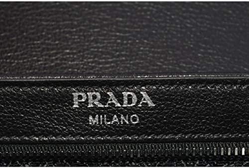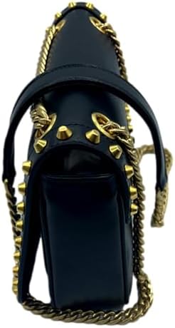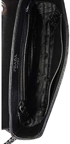 Prada crossbody bag is crafted from black calf leather and is adorned with gold studs on the front face, along with the iconic logo plaque. The black jacquard-lined interior is conveniently equipped with a slip and zipper pocket for organizing your essentials in style. Versatile and fashion forward, this handbag features a sliding gold chain and leather strap that can be worn as a crossbody or shoulder bag. Effortlessly transition from day to night styles with this sophisticated and edgy crossbody bag, only from Prada. Model: 1BD147 Black Glace calf leather Gold Stud Accents Gold Prada logo plaque Gold-tone hardware Magnetic snap button closure Black jacquard lining 1 interior zipper pocket 1 interior slip pocket Gold chain and leather strap, Drop: 21" Measurements: 9" x 2.2" x 6" (LWH) Includes authenticity cards and Prada dust bag. Made in Italy