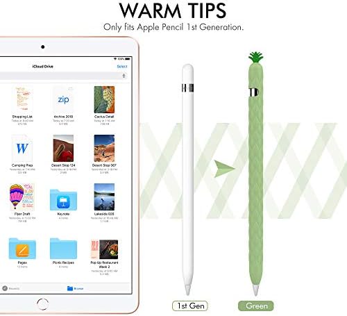 ?【COMPATIBILITY】This soft silicone sleeve ONLY fits Apple Pencil 1st Generation. (Apple Pencil not included). ?【UNIQUE DESIGN】Cute fruit shape design makes your Apple Pencil very unique and eye-catching everywhere. ?【CHARGING EASILY】One-Piece design protects charging cap from loss and easily peeled aside to charge any time. ?【PREMIUM MATERIAL】Premium silicone material helps increasing grip, protects your Apple Pencil from daily scratches. ?【INSTALLATION】Squeeze in slowly the from the curve part of your Apple Pencil to make the installation easy.