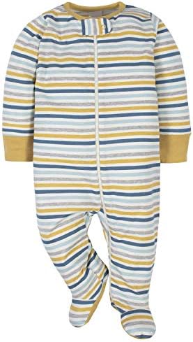 Includes four (4) long-sleeve Gerber sleep n' plays Front zippers with safety tabs for easier changes Keeps your baby comfortable as they rest or romp Machine wash, tumble dry Art details: Screenprint