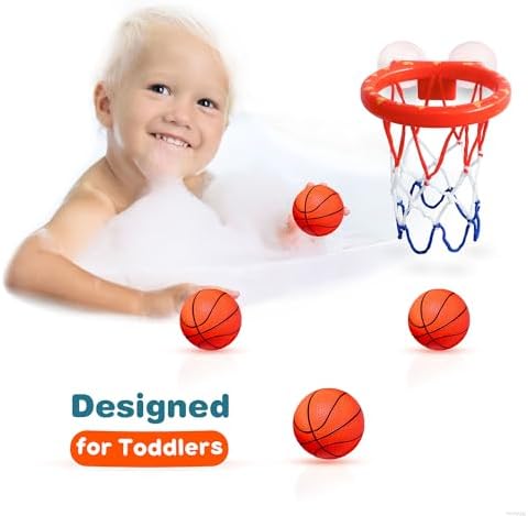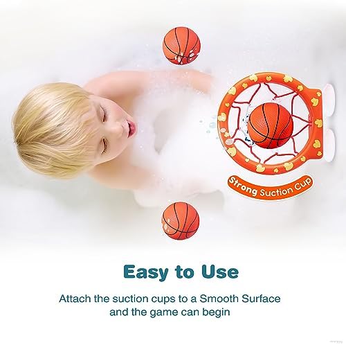 MARPPY Bath Toys, Bathtub Basketball Hoop for Toddlers Kids, Boys and Girls with 4 Soft Balls, Mold Free & Strong Suction Cup, Bathtub Shooting Game & Fun Toddlers Bath Toys for Boys or Girls