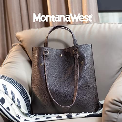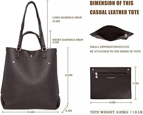 Montana West vintage large tote bag is crafted out of premium vegan leather, accommodates daily essentials with a spacious and organized space, and a magnetic to secure it shut. The top handle handbag features a double carry design, wear it flexibly on the shoulder with long handles or as a handbag with short handles. 4.3"D x 13.4"W x 14.6"H (10.4" & 4.3" drop). Includes 1* front open pocket and 1* inside open pocket. An extra detachable zipper pouch. Essential for work, and casual use.