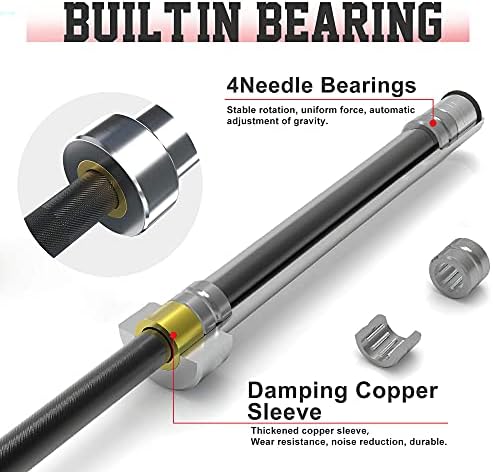 Material: The Olympic barbell is made of 190,000 tensile strength steel, weighs 20kg, can bear a weight of 700lb, and has enough tension to meet various exercise needs. It's a great choice for exercise. Specifications: total length -87in, shaft length (length between sleeves) -52in, sleeve length -16in, handle diameter -28mm, with a 1.2mm diamond knurled design on it to enhance the friction of the hand, Bring a great sense of grasping handshake. Features: The rotating sleeve is equipped with 2 needle roller bearings, and there are 4 needle roller bearings at both ends, which can provide all-round silky rotation to further ensure personal safety during exercise. Uses: An Olympic barbell can exercise multiple parts of the body, and can be used for squats, bench press, shoulder presses and other movement training. It is suitable for commercial or domestic use. Durability: The Olympic barbell is chrome-plated, and its surface has high hardness and good wear resistance. The shaft has a special black material coating, which protects the shaft from sweat and is durable.