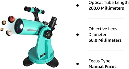 The mak telescope stands out from other beginner level telescopes by providing sharp and crystal clear views with almost no chromatic aberrations. You can enjoy viewing both distant celestial objects including the moon, Saturn, Jupiter, and vivid terrestrial targets in nature. This tabletop telescope is an upgraded version of Maksutov Planet Mate 60 Telescope. Simple navigation and no need to align make it extremely easy to use. The Dobsonian mount enables vibration free viewing, and with the finderscope, aiming and tracking your target is a breeze. Included 20mm eyepiece renders 37.5X power. The telescope is small but powerful for its size, having 750mm focal length in a small 200mm tube. You can use other 1.25'' eyepiece to change magnification. The telescope features a detachable lid, which reveals the internal structure of the tube and how it works inside. It can be a great astronomical educational kit. And the included universal phone mount helps you easily capture the moment and share with your loved ones. If you're not happy with our mak60 telescope or need professional suggestions, contact us anytime and our customer care will help you. And you will also receive 1-year hassel-free warranty for the telescope.
