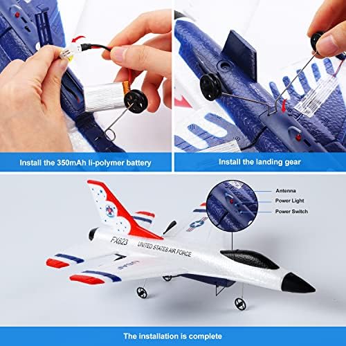 EagleStone RC Airplane 2.4GHz 2 Channel Remote Control Plane with Gyro and 3 Batteries (30 Mins), Easy to Fly F-16 Model Gift for Adults, Beginners and Advanced Kids