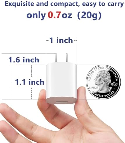 Safe & Quality Reliable usb brick charger: Single Port USB Wall Charger has protection system against over charging, over currents, and over heating. The charger heads will automatically stop charging when power is full, which can maximumly protect your device Portable travel plug: Only 0.7oz(20g), ideal for portable.home charger adapter allows charging at home or in the office via USB cable connection. Simply plug in the USB cable, and plug the adapter in to the wall. Compact, lightweight, portable, stylish, easy to store. Universal Compatibility:5V*1A charging protocol, suitable for all USB-A devices. Compatible with all 5 watts electronic products (Android phones, wireless charging adapters, power banks, etc.)iPhone 12,iPhone 12 Mini,iPhone 12 Pro,iPhone 12 Pro Max,iPhone SE 2020,iPhone 11,iPhone 11 Pro,iPhone 11 Pro Max,iPhone X,XR,iPhone XS,XS Max,iPhone 8,8 Plus,iPhone 7,iPhone 7 Plus,iPhone 6s,6s Plus,iPhone 6,6 Plus,iPhone 5S,iPhone SE,iPhone 5,5C. After-sales:12-month warranty.if there are any quality problems, please directly choose a full refund or free replacement. No need to return goods due to quality issues. High-quality after-sale service. What You Get: 1 x USB A wall charger adapter (Cable Not Included). 12-month warranty and friendly customer services. #764 in Cell Phones & Accessories ( ) #112 in