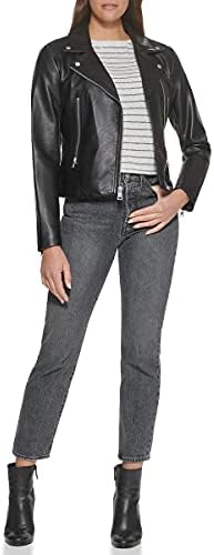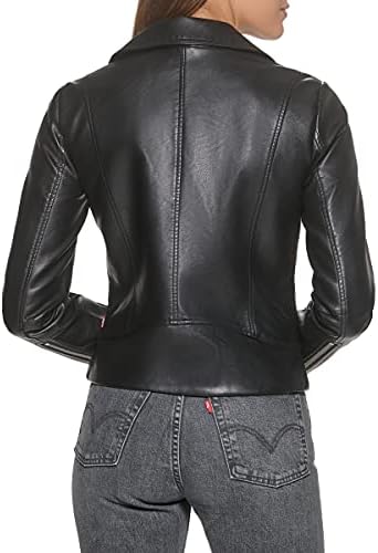FUNCTIONALITY: Two lower zipper pockets for viable storage and safe keeping; The outer shell is water resistant allowing for easy care STYLISH FEATURES: Asymmetrical center front zipper with snap-down lapels, functional zipper detailing on cuffs VERSATILITY: This smooth touch faux leather jacket a staple in every woman’s closet; It is perfect to transition between seasons or to use as a layering piece #360,079 in Clothing, Shoes & Jewelry ( ) #168 in