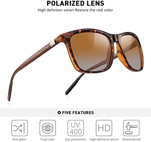 POLARIZED LENS - Polarized sunglasses reduce glare reflected off of roads, bodies of water, snow, and other horizontal surfaces. Restore true color, eliminate reflected light and scattered light and protect eyes perfectly. Polarized sunglasses cut glare and haze so your eyes are more comfortable and you can see better. STYLE - New brand design,it is suitable for any face, show your unique and high-end taste. SUITABLE - The perfect choice for taking selfies,shopping,houseboat,driving,running,fishing,climbing,trekking and business or other outdoor activities enthusiasts. SIZE - Lens Height:45MM(1.77Inches)--Lens Width:56MM(2.20Inches)--Arm:140MM(5.51Inches)--Bridge:16MM(0.63Inches)--Frame Length:142MM(5.59Inches). GIFT IDEAS PACKAGE - Sunglasses*1, Leather glasses case*1, Glasses kit*1(including microfiber glasses cleaning cloth and instruction book), Paper Box*1. It is also a gift packaged ready, making it a wonderful yet practical gift idea for friends and family! #1,562 in Clothing, Shoes & Jewelry ( ) #10 in