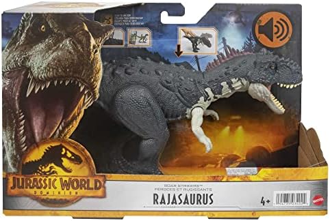 Mattel Jurassic World Dominion Roar Strikers Rajasaurus Dinosaur Toy with Neck Stretch Chomp & Sound, Plus Downloadable App & AR