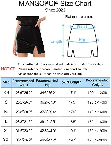 SIZE TIP - Please refer the recommended size in our last image for a better fit. We suggest to measure your WAIST/HIP circumference and select the size that suits you, according to our size chart. Any problem, do not hesitate to contact us at once. BASIC MINI SKIRT - Leather skirt for women sexy features with high waist, concealed zipper closure in the back, slim fit style, package hip design, above knee length, to show off your ultra-sexy and chic figure. Comfortable room in the butt and thighs make you easy to walk around. Every girl need a skirt like this in their closet, the little black dress of skirts SEXY SLIT SKIRT - There are two leather skirt with slit for your choice. Both of them are form fitting and flattering to fit on most body types. One is made of high stretchy fabric and back elastic waistband. The other features with concealled back zipper closure, slightly stretchy fabric, high wasit design POCKETS SHORT SKIRT - There are two pockets in front of the skirt. You can easily put some cards, phone and other item. Pocket design looks fashionable and practical OCCASION - Nice Choice for SPRING/SUMMER/FALL/WINTER. Perfect to pair with Tshirt, Bodysuit, Crop Top, Sweater, Blouse and other styles of tops. Take it as casual wear, shopping wear, street match, going out with friends, night out, club, party, cosplay, travel, vacation, and outdoors. It's a versatile women skirt best option in your wardrobe! Certainly, a good choice as a gift