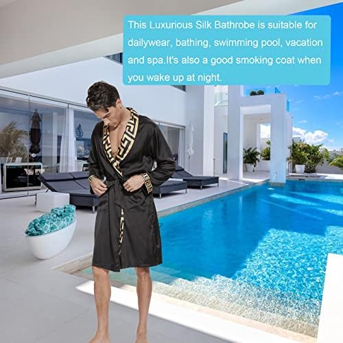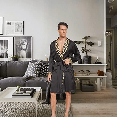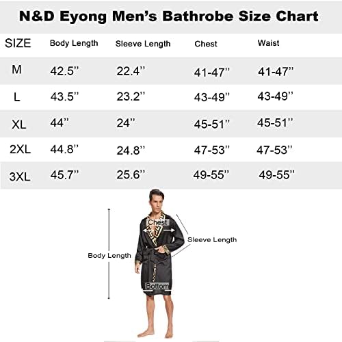 N&D Eyong Men's Luxurious Silk Feeling Bathrobes Long Sleeve Satin Kimono Robe with Shorts Sleepwear Set Printed Bathrobes