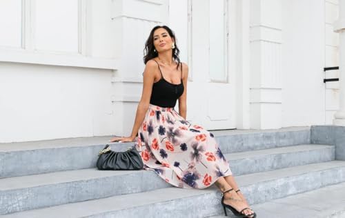 Features: Comfortable Chiffon, High Waist, Pleated, Lining Layer, Midi or About Knee Length, A-Line skirt This midi length chiffon skirt has a comfortable lining, high elastic waist can range to many sizes.You can wear this beautiful pleated skirt with many kinds of tops on spring, summer and autumn SIZE REFERENCE: S(US 2-4), M(US 6-8),L(US 10-12),XL(US 12-14), 2XL(US 14-16), 3XL(US16-18).The skirt length is about 31 inches Garment care: Recommended hand wash separately in cold water, dry clean is also available Occasion: casual, work, shopping, party, dating, daily, holiday, beach, celebrations, festivals, engagement photos, graduation, homecoming party, or more special occasions. Easy to match with a variety of tops. #7,076 in Clothing, Shoes & Jewelry ( ) #19 in #5,245 in