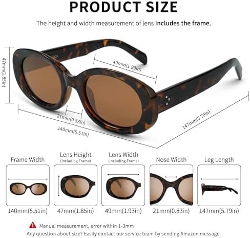 TAC POLARIZED LENSES: Zeelool retro oval sunglasses can block 100% harmful UVA&UVB rays and perfect protect your eyes against long term UV damage. TAC high-definition lens will restore the true color and also bring you a clear visual experience. DURABLE CHUNKY FRAME: Zeelool vintage oval sunglasses are made of premium plastic, reinforced metal hinges, widened temples and chunky frame, which make Zeelool trendy oval sunglasses durable and bring you a comfortable wearing experience. CLASSIC RETRO DESIGN: 90s oval sunglasses have been very popular among the public. As a kind of vintage sunglasses, the oval sunglasses looks more trendy and elegant so that can be suitable for all face shapes and matched with different types of wear. PRODUCT DIMENSION: Lens Width: 49 mm(1.93 inches) / Lens Height:47 mm(1.85 inches) / Temple Length: 147 mm(5.79 inches) / Nose Bridge: 21 mm(0.83 inches) / Total frame:140 mm(5.51 inches). GIFT PACKAGING: Zeelool retro oval sunglasses x1 / Glasses case x 1 / Microfiber pouch x 1 / Soft glasses cloth x1 / Mini screwdriver x1 / Polarized testing card x 1 / Exquisite packaging x 1. It is also a gift packaged ready, making our fashion shades become a wonderful yet practical gift idea for friends and family. #211,490 in Clothing, Shoes & Jewelry ( ) #2,090 in