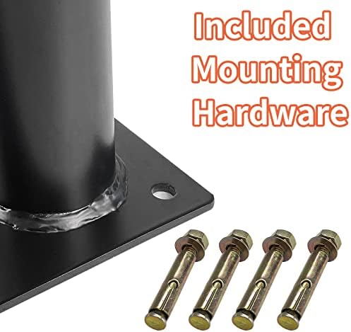 Holds up to 5 bars with diameter of 1" and 2" :Bar hole diameter: 2". Dimensions: 12"x12". Height: 6". The holder can hold 5 pc bars.Noted bolt it on the floor to prevent falling over. Vertical barbell holder floor stand :Our weight bar holder is constructed of heavy gauge steel for strength and stability, heavy duty bottom keeps the bars straight and upright. Black powder coating finish features scratch proof and rust resistant, all for a long time use. Barbell Storage Holder: Are you still worried that the barbell rack can't be found or takes up space? Our Barbell storage Holder is a great idea for anyone who's looking for a bar holder that layout takes up little space. Its compact design helps organize the messy barbells bars, make you enjoy a tidy exercise environment. SturdyPowder Coated:This barbell holder with premium coating, Scratch resistant friction resistant, protects its structure from scratches. Package including: 1 piece of heavy duty barbell storage rack. (mounting hardware included-screews)