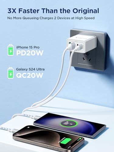 【High-Speed Charging】: The USB-C port supports a maximum power output of 20W. Aioneus usb c charging block offers fast and efficient charging up to 3X faster than a 5W charger block. Charge your iPhone devices from 0% to 50% in just 30 minutes. 【USB Wall Charger Multiport】: New Upgraded Design - ONE CHARGER BLOCK with Dual USB-C ports and Dual USB-A ports. Allow users to charge phone, tablet, laptop and headphones simultaneously to minimize waiting time. It’s also a great space saver instead of taking up 4 wall outlet ports. The best replacement for your original usb charger. 【For All Your Devices】: This type c charging block compatible with All smartphones and tablets, such as iPhone 14/14 Pro/14 Pro Max/14 Plus/13/13 Pro/13 Pro Max/13 Mini/12/12 Pro/12 Pro Max/12 Mini/11/11 Pro/11 Pro Max, iPhone XS/XS Max/XR/X/10/8/8 Plus/7/7 Plus/6/6S/SE 2020, iPad, iPad Pro, iPad Air, iPad Mini, Samsung Galaxy S22/S21/S20/S10/S9/S8/S7/S6/A12/A13/A22/A32/A52/A53/A71/Note 20 10, LG, Motorola, Google Pixel, Kindle Fire, Tablets, etc. 【Complete Safety & Reliability】: Certified RoHS, CE & FCC, protect devices from overheated and over-currents, overcharging, and short circuits, charging will be automatically stopped when the battery is full. The usb c charger block featured with ABS + PC fireproof material, you can make sure your digital devices are always safe charge. 【Portable, Compact Design】: Incredibly compact size for enhanced portability. All this power comes installed in a pocket-friendly compact body, to go wherever the journey takes you. Ideal for home, office and on the go. We provide this 40W 4-Port USB C Wall Charger (cable not included) with 18 Months Worry-free Replacement and 24/7 Online Customer Service. If you have any problem, please contact us freely.