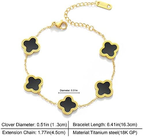 ♣.《Idea》: Legend four-leaf clover symbolizes luck, one hundred thousand beads of clover can only find a four-leaf clover, four leaves respectively represent true love, health, reputation, wealth! ♣.《Product size》: The Clover Bracelet is 6.41 "+1.77" extension chain, adjustable extension chain design meets most wrist requirements. ♣.《Product Material》: High-quality stainless steel,anti-allergy,does not fade,Make your experience feel perfect. ♣.《Suitable for the crowd》: Nothing makes a woman happier than jewelry! Give the gift of jewelry with these stunning gold clover Bracelets for yourself or for your mother, daughter, girlfriend, wife, or friend. They are the perfect choice for birthdays, Valentine's Day, Mother's Day, or any other special occasion ♣.《After-sales service》: If there is problem with the products, you can contact us through your Amazon order interface. The after-sales team is always ready to solve the problem for you until you satisfaction. #152,897 in Clothing, Shoes & Jewelry ( ) #436 in