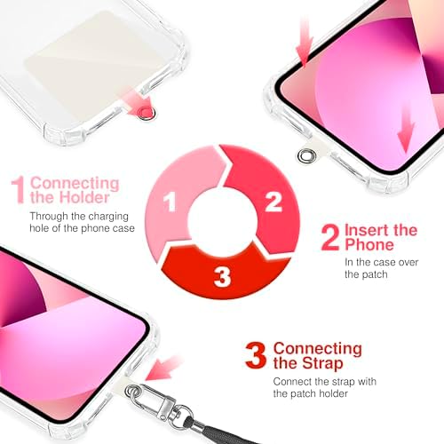 TBOC 2X Cell Phone Lanyard [Fuchsia] - Convenient and Comfortable iPhone Lanyard - Easy to Use Neck Phone Holder [White Ice Patch] - Adjustable Length Phone Strap Crossbody - Fits All Mobile Phones