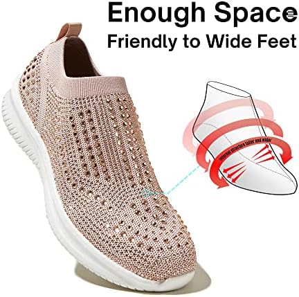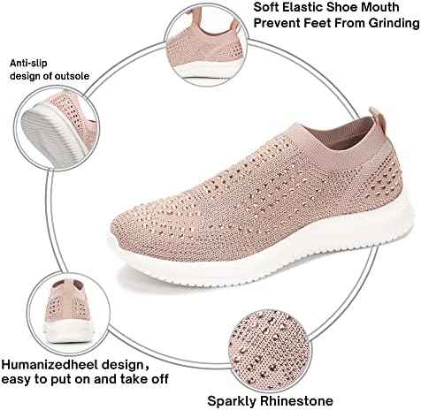 【Unique Design】:High quality elastic mesh knit upper with sparkly rhinestone embellishment,fashionable and breathable. 【Super Convenient】: Classic slip on sock shoes design with elastic shoe mouth, convenient for you to put on and take off.There is enough space in the forefoot of the shoe, you will not feel narrow when you wear it, and it is very friendly to wide feet. 【COMFORT】:High quality knitting upper material, Keep your feet stretch and breathable,Memory foam insole allows you to walk for a long distance or stand for a long time without feeling sore. 【EASY TO MATCH】 :Perfect paired with dresses,skirts,shorts,jeans,denim, outfits and any daily wearing.Good choice for womens, ladies,teen girls,juniors and students. 【OCCASION】:Better for walking,casual work,shopping,travel,driving,Indoor & outdoot. #11,364 in Clothing, Shoes & Jewelry ( ) #57 in