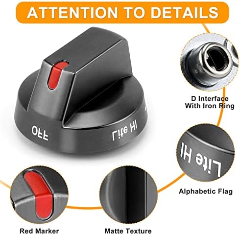 【PERFECT FIT】- The DG64-00473B Samsung range surface burner knob is compatible with stainless steel samsung gas range/ oven/ stove, Fit for Samsung Range Oven: NX58J5600SG/AA-00, NX58J7750SG/AA-00, NX58K7850SG/AA-00, NX58M6850SG/AA-00, NX58M6850SG/AA-01, NX58M6850SG/AA-02, NX58R5601SG/AA-00. 【SUPER CRAFT】- ① This DG64-00473B Samsung gas stove knob surface is brushed to enhance the overall vision of the stove, ② The back is made of stainless steel structure, which has balanced characteristics. ③ To extend the service life, the upgraded knob has a special widening of the "D" interface adopts to better fit the size of the furnace bottom shaft, won't be cracked easily. 【EASY TO SET】:DG64-00473B range stove knobs can fix the following symptoms:①Will not start②Will not select setting③Will not turn. ? To replace knobs, do not bend the knob up or down, slide the knob directly out of the stem, and slide the replacement knob back to the stem. It is normal that the D-type port is too small for the first use, and lubricating oil can be applied to assist the installation. 【PRODUCT SPECIFICATIONS】- 5 × DG64-00473B Gas Stove Knob for Samsung. ② Size: 2.3 inches /5.6 cm in diameter, "D" design: 0.17 inch in interface (Please refer to the picture for details). Before purchasing, please check the part number or measure the original size to make sure that the shape and size are the same!To avoid receiving unsuitable products 【Good After Sales】: We support return and exchange within 365 days, we have a professional after-sales service team, we will solve your problem within 24 hours, please give us a chance.