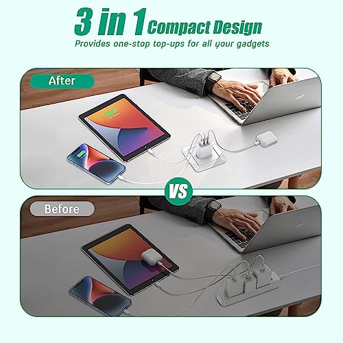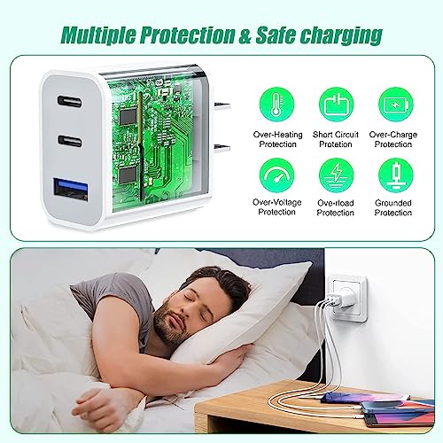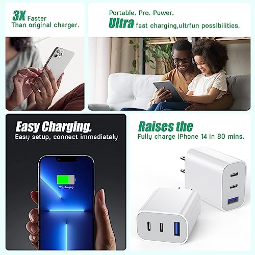 ?【35W PD 3.0 Fast Charging Block】Three port integrated fast iphone charging blocks, connected to a device to obtain a maximum charge of 35W, enough to charge the iPhone 14 Pro Max at full speed.Its speed can be four times faster than the original 5W charger. It can quickly charge the iPhone 14 Pro Max from 0% to 58% in 30 minutes. When you connect three devices,usb c block power will be efficiently distributed between ports to ensure optimal charging. Maximum output 35W,minimum output 12W. ?【2 Packs 3-in-1 USB Wall Plug 】Use Articona usb c charger block With 2 USB-C ports and 1 USB-A port, you can fast charge multiple devices such as phones and tablets at the same time. Advanced power distribution technology ensures optimal performance and faster charging time each time.Compared to a regular charger, this three port usb c adapter is compact and lightweight, perfect for travel, achieving the ultimate in speed, efficiency, and convenience! ?【Fast Charger Block Safe Assurance】This multi-port usb c charger has passed UL certification and features multiple charging protections such as overvoltage protection, overcurrent protection, overheating protection, and short circuit protection.It also provides continuous temperature monitoring and output control.When the device is fully charged, the charging station will automatically stop charging to protect the connected device. ?【iphone 15 charger adapter Universal Compatibility】USB C Charger can charge multiple devices for New iPhone 15/iPhone 15 Plus/iPhone 15 Pro/iPhone 15 Pro Max/iPhone 14/14 Plus/14 Pro/14 Pro Max,iPhone 13/13 Mini/13 Pro/13 Pro Max,iPhone 12/12 Pro/12 Pro Max/12 Mini,iPhone SE (2nd generation),iPhone 11 series,iPhone X series,iPhone 8 and later;iPad Pro,iPad Air,iPad Mini, AirPods Pro 2and later/iPad Mini 5 and later Pixel 3XL/3/2,Samsung Galaxy/Note Series,Google,LG,Moto,and other USB devices. ?【What You Will Receive】2 packs of PD 3-Port iPhone adapter plugs (note: no cable)+ professional customer service team,If you have any question when you receive your USB C Charger Block please contact us and we guarantee to provide you with a satisfactory solution. #1,778 in Cell Phones & Accessories ( ) #187 in
