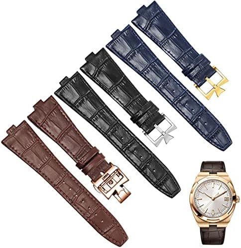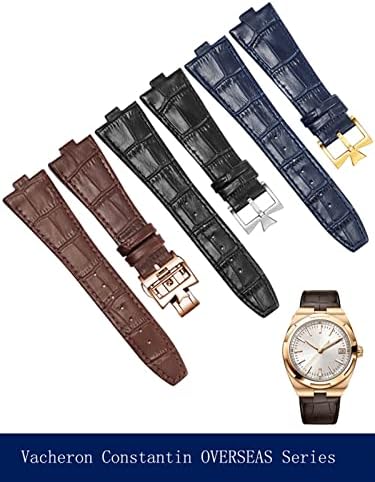 GANYUU Genuine Leather Watchband for Vacheron Constantin Overseas Series 4500V 5500V P47040 Stainless Steel Buckle 25 * 8 mm Men Watch Strap (Color : Blue-Silver-B, Size : 25-8mm)