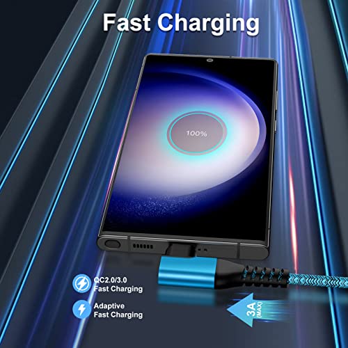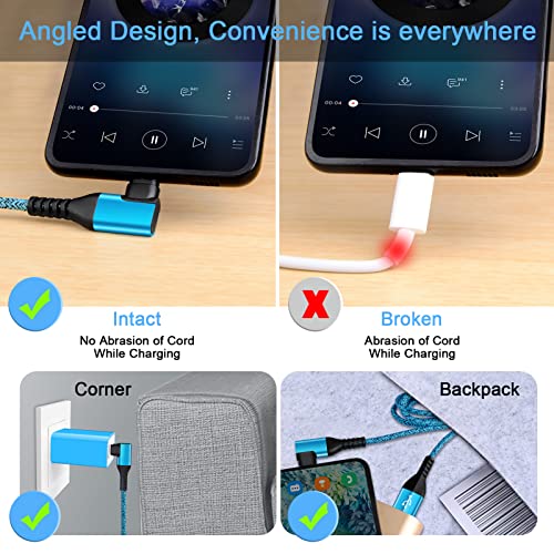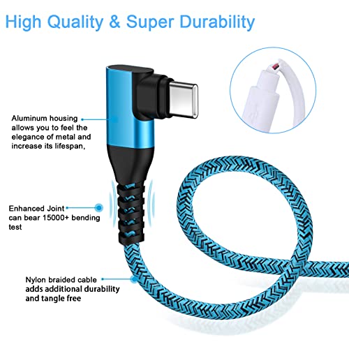 Right Angle Design: This right angle usb c cable fast charge with an innovative 90 degrees " L " design. It's user-friendly design makes it perfect for gaming, app use in portrait mode, watching videos, and reading e-books. 3A Fast Charging and Sync: USB c right angle cable supports QC fast charging up to 3A and data sync speed up to (480Mbps).Please note:If you want to fast charge your phone, please use a original charger or power adapter and you phone also must support fast charging. Durable & Long Right Angle USB C: Premium nylon braided jacket has excellent tangle-free, anti-twisting and abrasion-proof properties that is very suitable for long time use. 6 feet length type c cable can let you enjoy free charging in everywhere, give you a more convenient and comfortable charging experience. Broad Compatibility: Samsung charging cable for Samsung Galaxy S23 Ultra, S23 Plus, S23, S22 Ultra, S22, S22 Plus, S21 Ultra, S21, S21 FE, S20, S10e, S10+, S9, S8, Z Fold 4/3, Z Flip 4/3, A10e, A01, A03s, A11, A12, A13 5G,A14 5G, A20, A22, A23 5G, A30, A31, A32, A33, A34, A42, A50, A51, A52, A53 5G, A54 5G, A70, A71, A72, A73 5G;Samsung Galaxy Note 20 10 9 8;Samsung Galaxy Tab S8, S8+, S7, S7+, S6, S5e, S4 and more. What You Get: 2 x 6ft USB A to USB-C cable 90 degree.Any problem about this samsung galaxy charger, please feel free to contact us. #47,207 in Cell Phones & Accessories ( ) #984 in